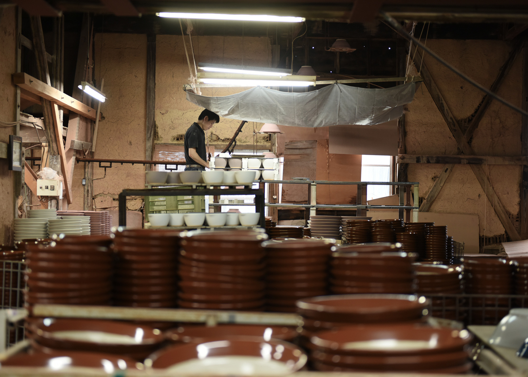 元重製作所は大正14年の創業以来、石見焼の水瓶をはじめ、植木鉢やお皿などを製造し、約35年前の三代目社長から、すり鉢を本格的に製造をはじめ全国に流通していきました。しかし4代目の元重慎市(現専務)が会社に入った時、昔と違い家庭からその姿が薄れかかっていたり、親世代が昔購入したものが丈夫なので新しく買う理由がなかったりと、すり鉢の需要はちょうど過渡期を向かえていました。モノづくりには絶対的な自信はあっても今までと同じやり方ではこのまま縮小してしまう。専務はとても危機感を覚えたのでした。