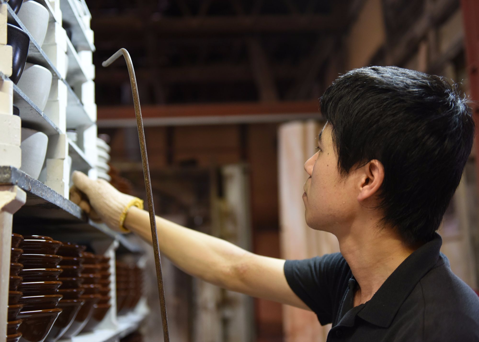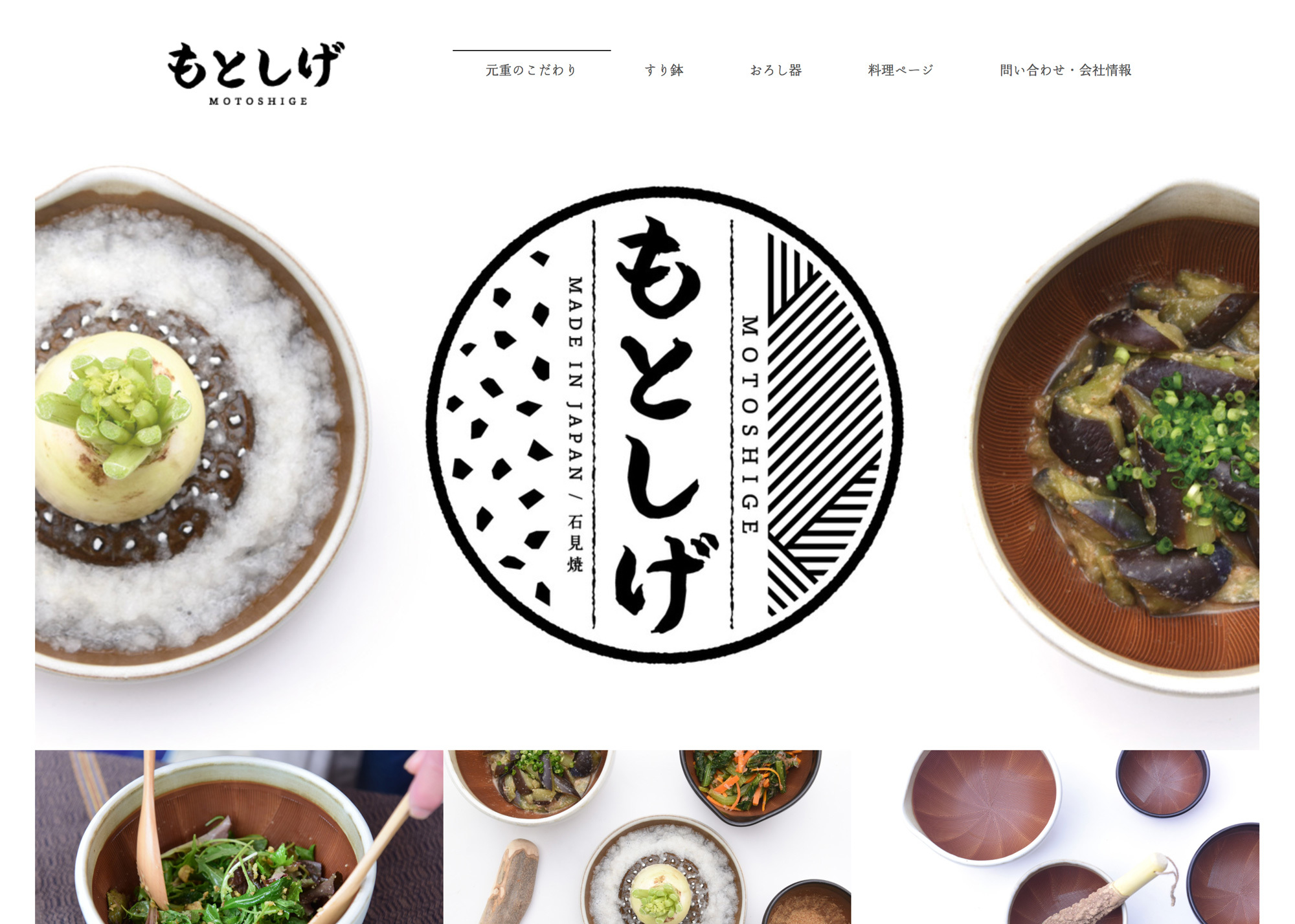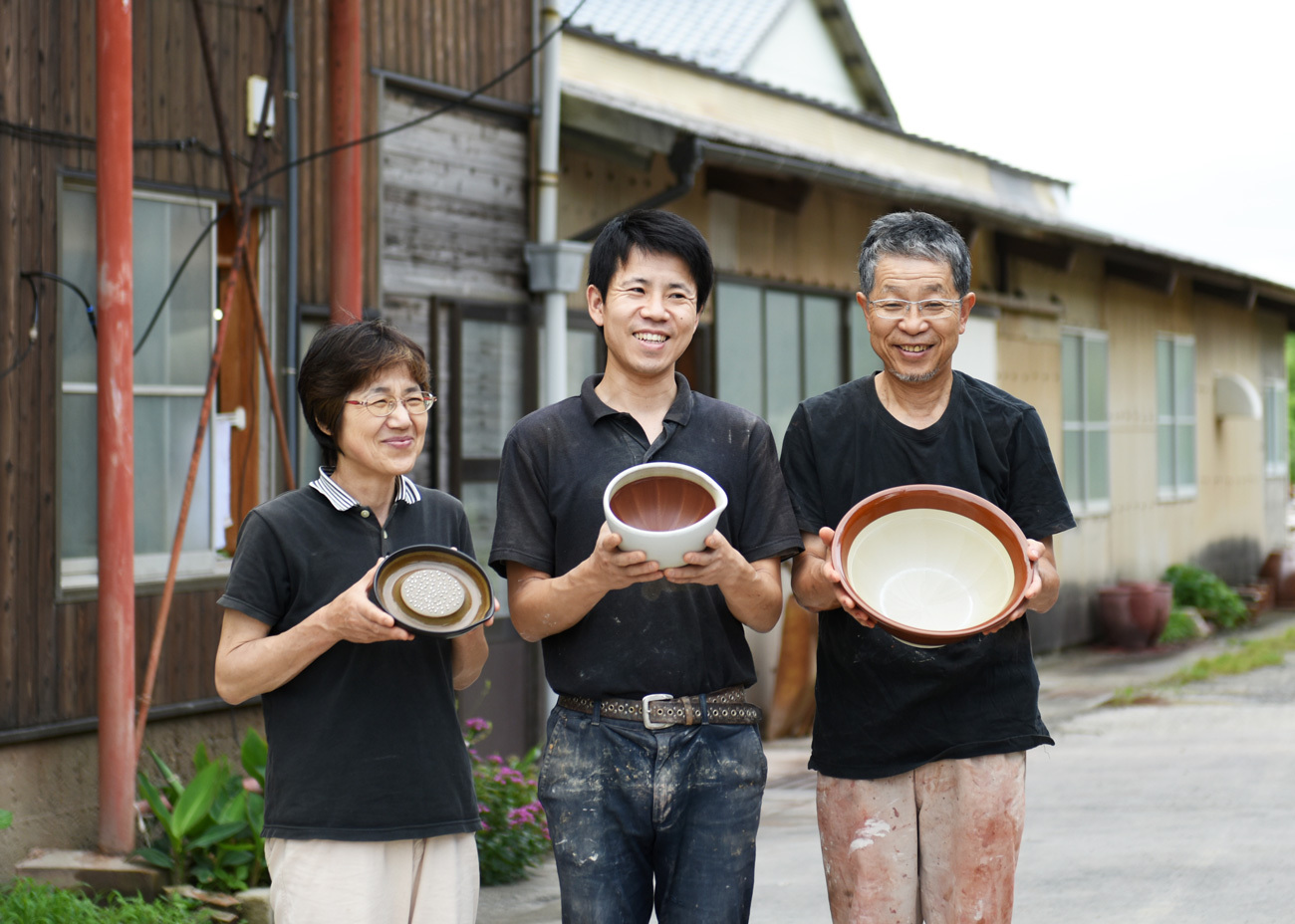 元々は石見焼きの水瓶を製造する会社でしたが上水道の普及により水瓶の需要は減少していきました。植木鉢やお皿など製造していた時期もありましたが他の焼物産地と比べると決定的に勝るものがなく、長く苦しい時代が続きました。三代目社長がこの状況を打破するためにすり鉢に最適だった石見の土を使い、すり鉢を製造を始めました。エンジニアだった経験を生かして、すり鉢専用の生産ラインを自ら設計し低コストで商品と作る環境を築き上げました。全国的にすり鉢が不足していたことも味方したことと、ホームセンターが全国に普及した時期に重なり、もとしげのすり鉢は全国へと広まっていきました。