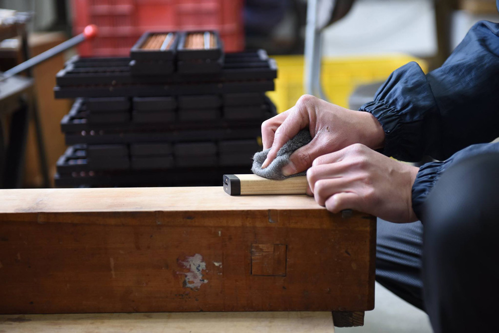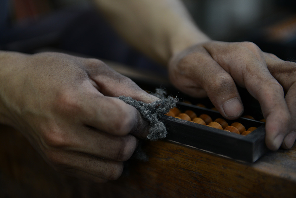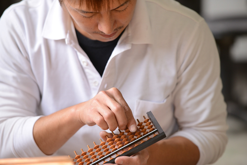 そろばんを教育道具として再認識。今では「よみ、かき、そろばん」という日本をここまで成長させてきた、そろばんを教育文化ごと世界に発信していくように活動されています。2014年1月には宮永社長の息子二人が帰ってきて会社の後継者となりました。長男は社長へ、次男は職人の道へと歩んだのです。そして現在では問屋だったダイイチは、そろばんの製造を行っています。すでに数名の若い弟子も育ち始めています。