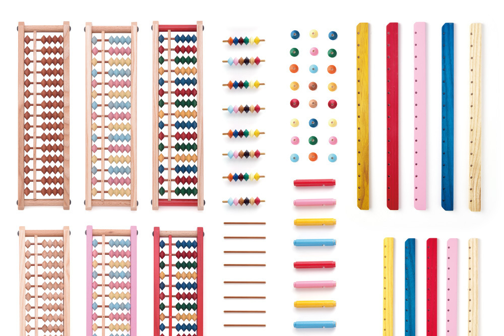 大きな目標は分業をやめることです。分業ではなく、生産を集約化し、生産がなくならないようにすることです。しかし、簡単なことではなく、長い時間をかけていこうと考えました。すぐにできて、その方向性に向かう手段として、そろばん以外でそろばん玉やヒゴダケの生産量を増やす商品開発を行いました。さらにショップ兼ワークショップスペースとして「そろばんビレッジ」を立ち上げました。子どもたちは5色の上下板、中板、ツマを選び、11色の珠の色を自由に選び組み立て世界に1つだけのそろばんを持って帰ることができます。そろばんビレッジは国内外問わず強固な営業ツールにもなります。もう一つ大きなデザインは教育道具としての印象づけをしたことです。伝統工芸品という顔を持つため、展示会などではそのフィルターが大きく、計算機時代の印象が拭えず、的確なバイヤーに伝えにくい印象を持っていました。そこで、教育道具としての総合カタログをデザインしました。展示会ブースの印象もそろばんビレッジに合わせるなど、カラフルで現代の教育分野の人が持つ印象に合わせたのです。